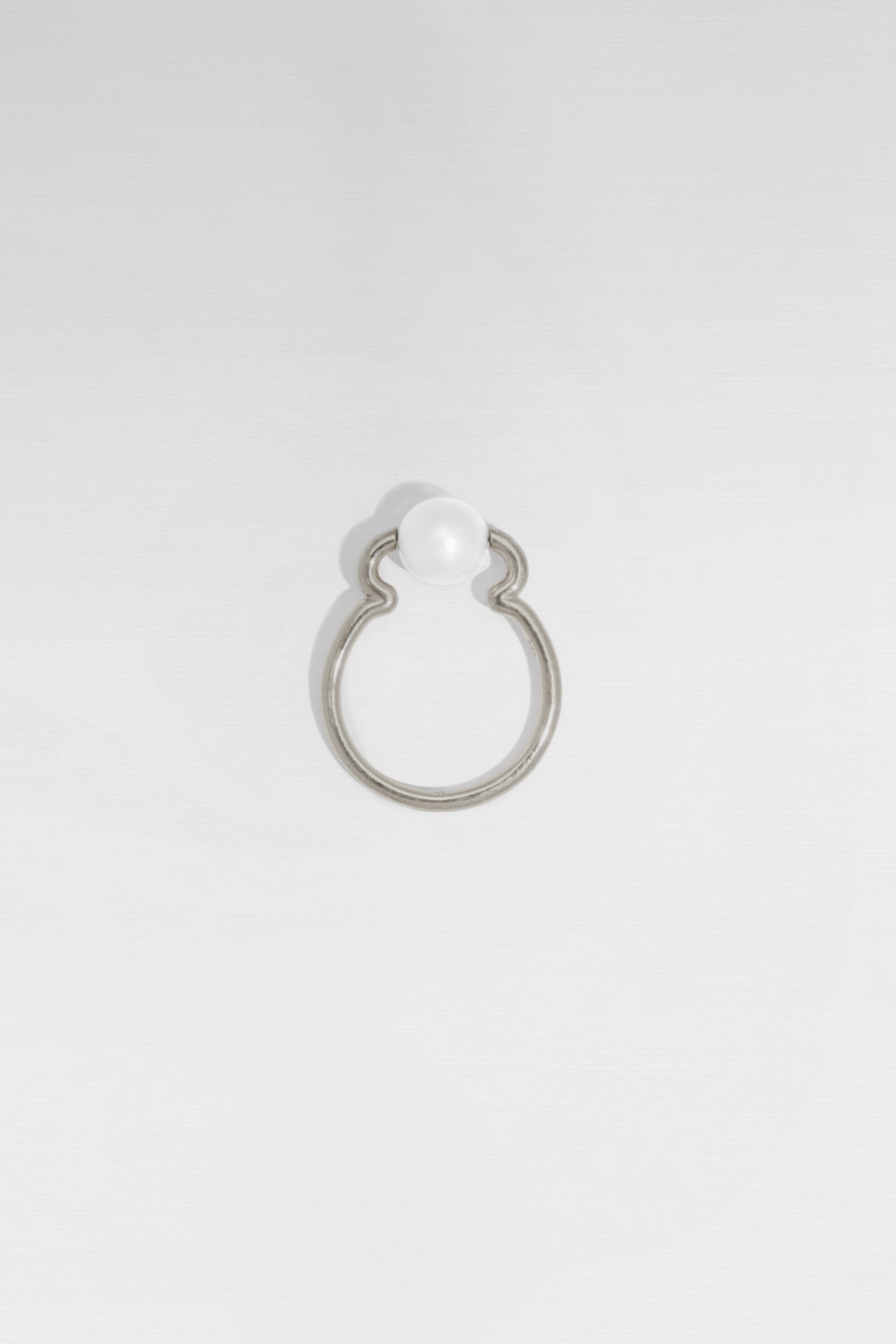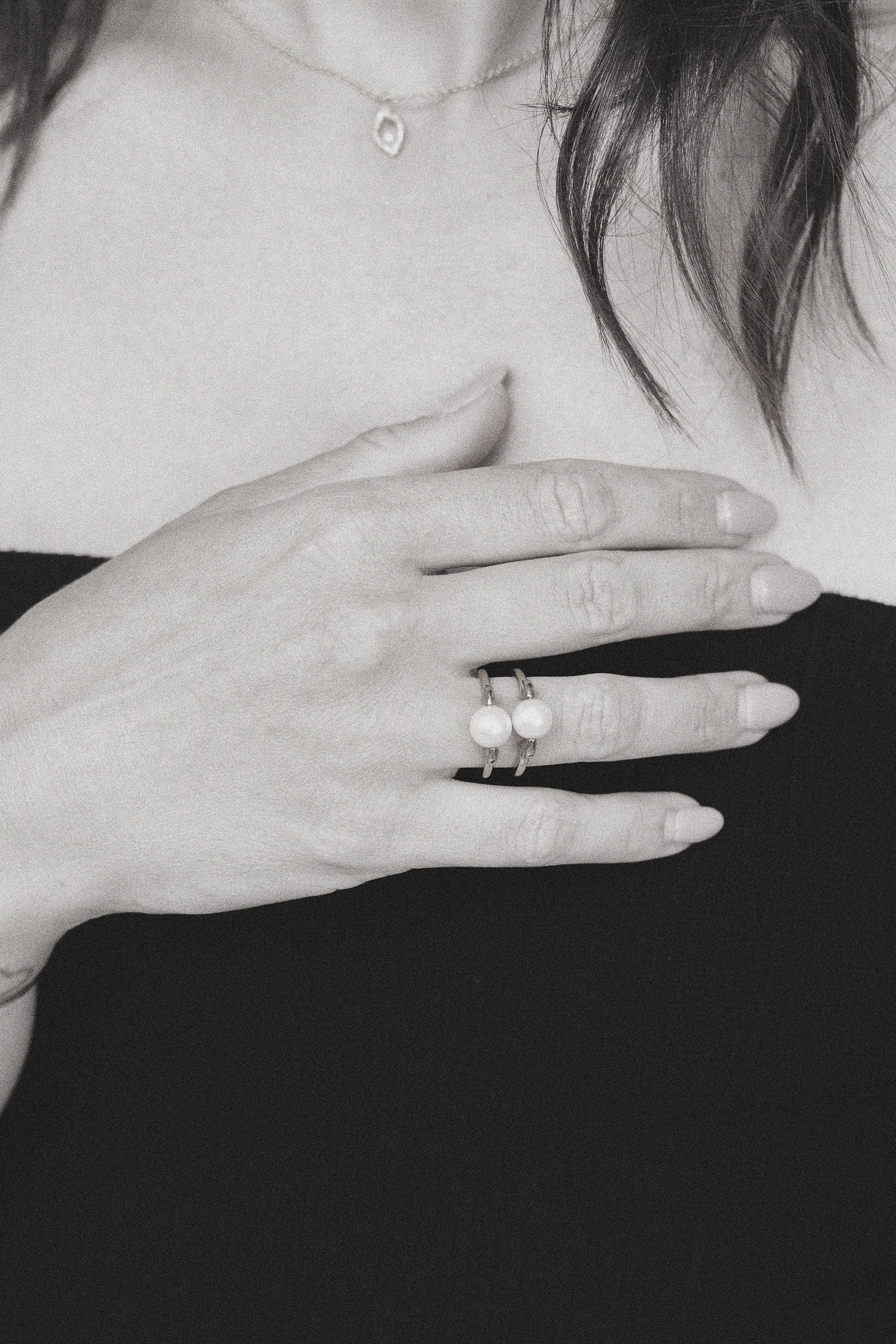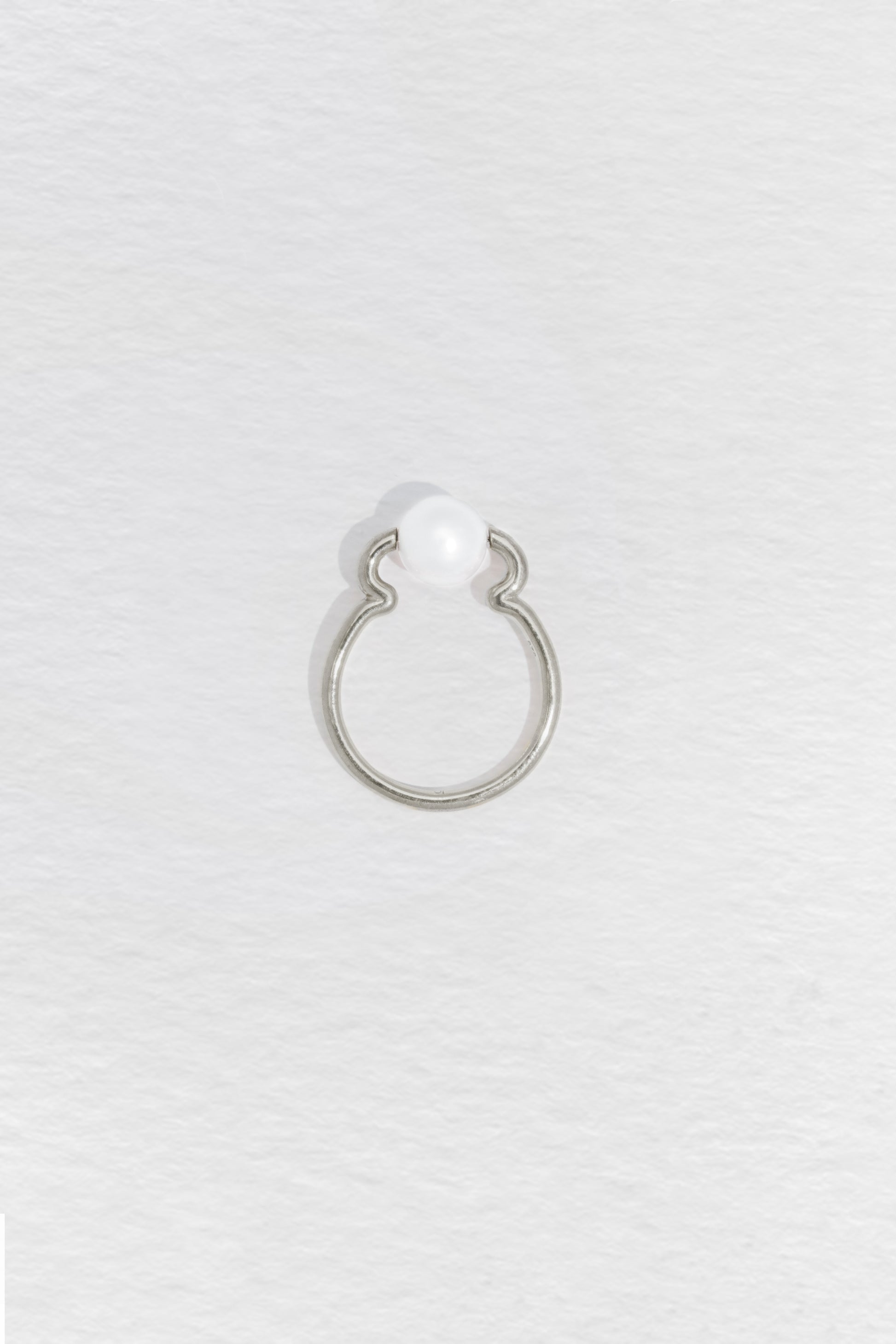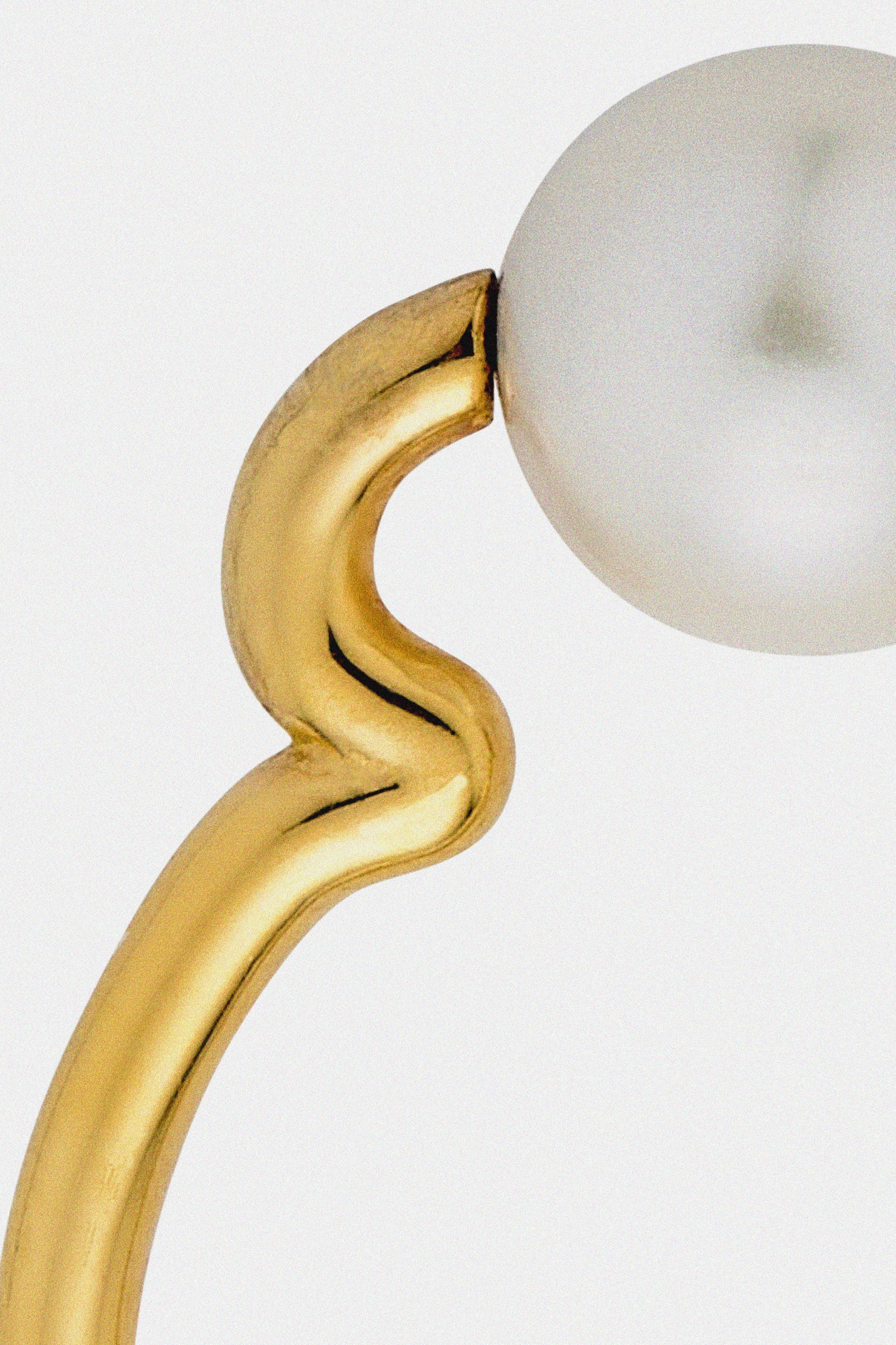 Radiating dramatic sophistication, this sterling silver piece—available in raw silver or with an 18K gold plate—is meticulously crafted with a clean, sculpted design. Gracefully suspended, a freshwater pearl adds a touch of luxurious refinement. Its subtle statement and versatility make it perfect for pairing with anything featuring a pearl.